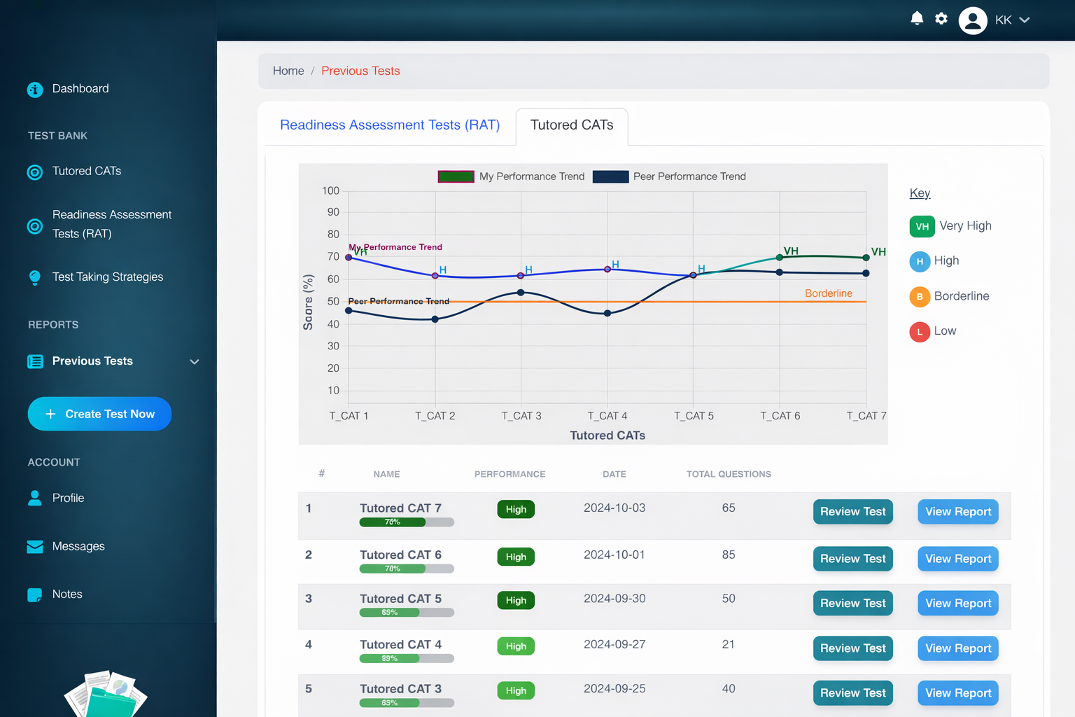 Monitor your progress with detailed analytics and CAT insights.